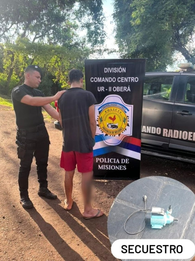 En paralelo, los investigadores trabajaron sobre el robo de una bomba de agua perteneciente a una empresa de transporte ubicada sobre avenida de los Inmigrantes. Mediante el análisis de registros fílmicos, lograron identificar al sospechoso como Lucas V., de 23 años, conocido por sus antecedentes delictivos. Minutos después, el joven fue detenido y se recuperó el objeto sustraído en el Barrio Caballeriza.