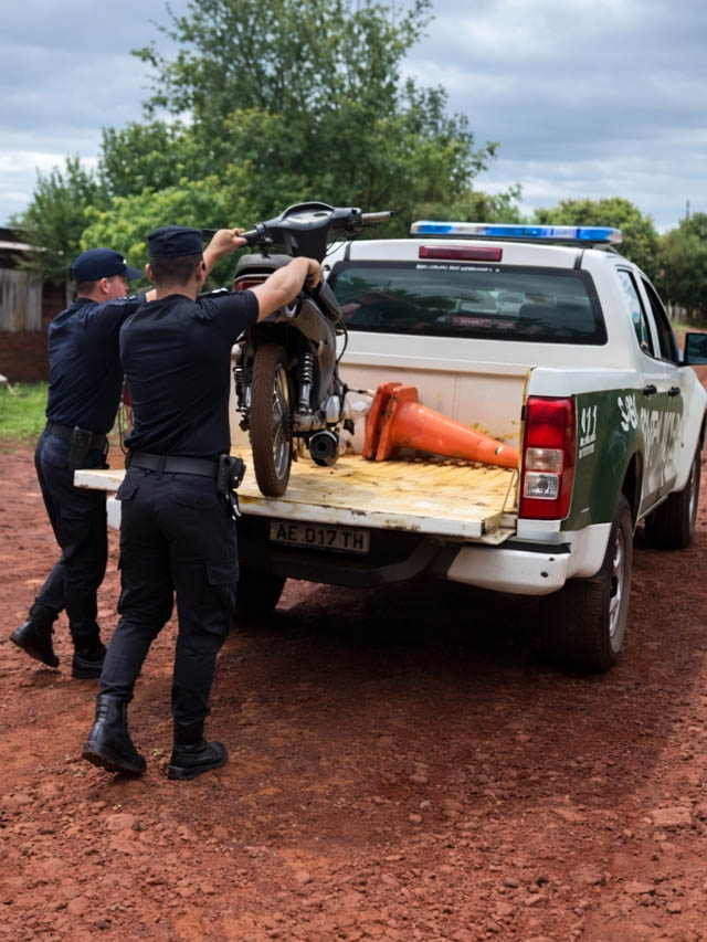 El procedimiento fue llevado adelante por efectivos de la Comisaría local, dependiente de la Unidad Regional VII, luego de tareas investigativas vinculadas a un motociclista que circulaba de manera temeraria, realizando “wheelies” y alterando el orden público en distintos sectores de la localidad.