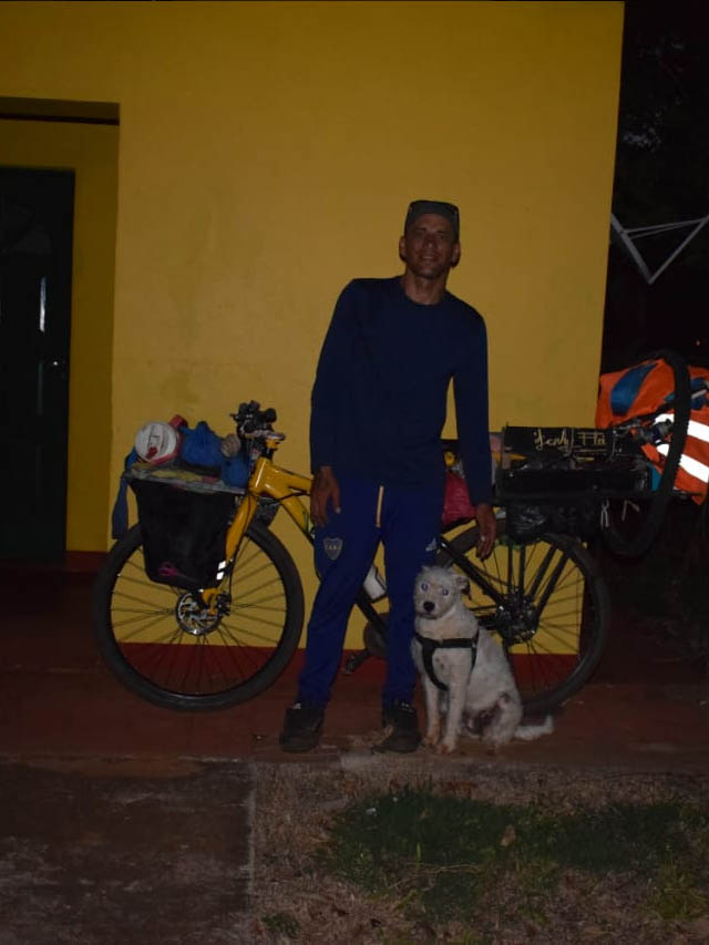 Se trata de Yoni Oliva, quien realiza su travesía acompañado por su perro, transitando distintos puntos de Misiones en una experiencia que combina aventura, intercambio cultural y turismo responsable. En cada lugar que visita, se presenta ante las autoridades locales y cuenta con la documentación correspondiente, tanto personal como de su mascota.